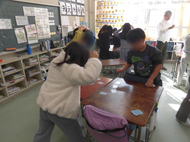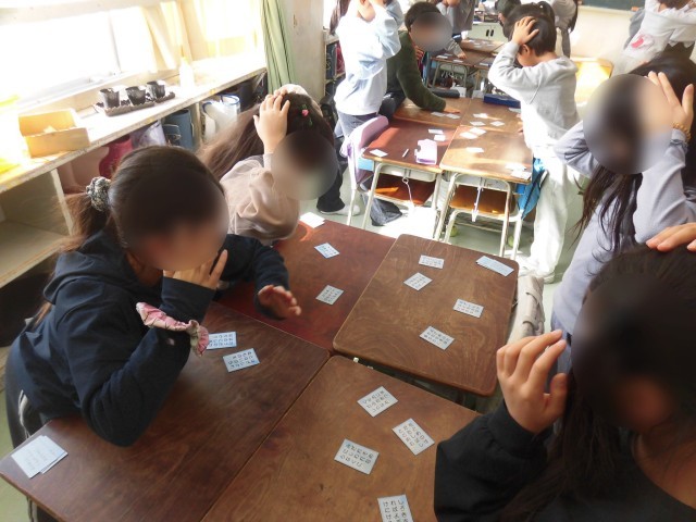 3年生の日本語で「百人一首」について学習しています。百人一首がどのような和歌なのか知るために、いくつかの歌の意味を考えました。そして、先生が読み手となり、グループに分かれて百人一首かるたで楽しみました。真剣な眼差しで取り札を見つめ、取れると「やったー!」と喜ぶ声がたくさん聞こえてきました。