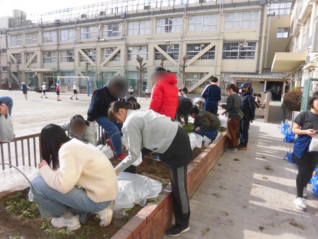 今日はクラブ活動が行われました。とても寒い日ですが、太陽も顔を出し、校庭でもたくさんのクラブが活動をしました。校庭球技クラブはティーボールを思いっきり楽しみました。大きな声で応援したり、点が入り、大喜びするなど、寒さを吹き飛ばすような白熱した試合が行われました。アウトドアクラブでは、校庭で育てていた野菜を収穫しました。カブやほうれん草など、小ぶりではありますが、おいしそうな野菜を収穫できました。今年度のクラブ活動の日も残り少なくなりましたが、良い思い出となるよう、楽しく活動していきます。