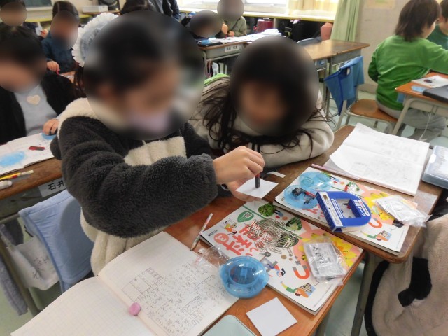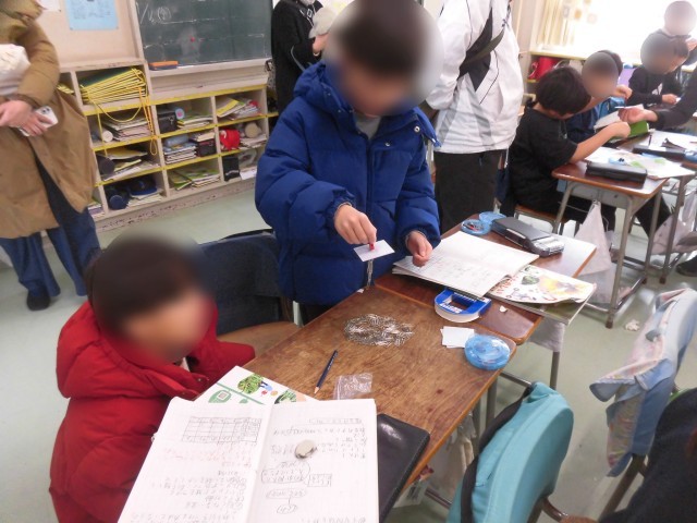 3年生の理科では「磁石のふしぎ」の学習をしています。今日は、棒磁石を使って、クリップがいくつくっつくか実験をしました。磁石に1枚画用紙をつけると、磁石は何個くっつく?画用紙を2枚にすると?3枚にすると?と画用紙を増やすとくっつく個数はどのように変化するのか考えました。「わぁ、たくさんくっついた!」「予想通りだ!」とワクワクしながら実験を進めることができました。予想と実験結果をノートに丁寧にまとめ、磁石の性質に気づくことができたようです。