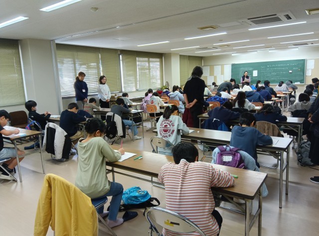 漢字検定後半の子どもたちが集まってきました。広い教室が満員です。