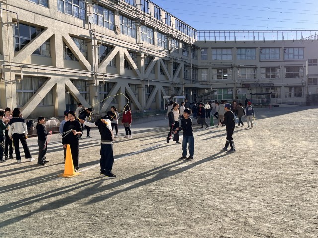 運動委員会の子どもたちによる「縄跳びリレー」の2日目です。昨日より多くの子たちが参加してくれました。5年生が大きな声で参加者に呼びかけています。6年生が見守りながら、フォローしています。みんなが楽しめるようにすることを一番に考えて、会を盛り上げてくれました。6年生が1年間がんばってきてくれた「明正小のために」という思いを5年生が引き継いでくれていると感じました。ありがとう。