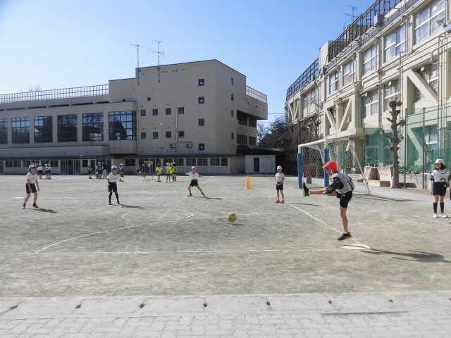 3年生の体育で「キックベースボール」を行いました。ボールを蹴って得点をとるベース型のボールゲームです。ルールもしっかりと理解して、チームで作戦をたてて試合を行いました。攻守ともにグループで声を掛け合いながら、協力する様子が見られました。「がんばれ!」「いけるよ!いけるよ!」と大きな声で応援し、とても白熱した楽しい試合になりました。