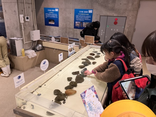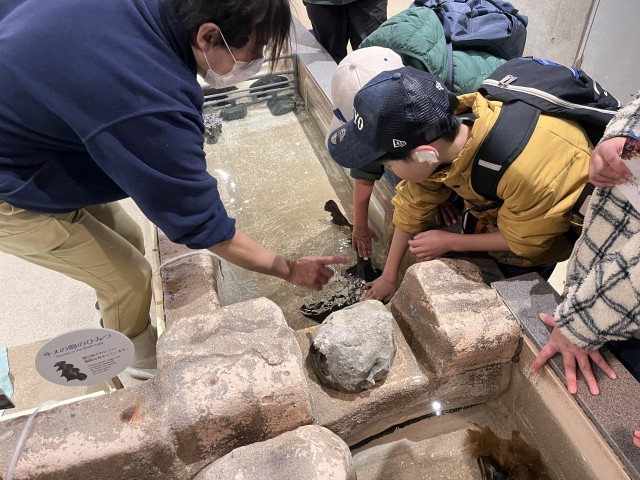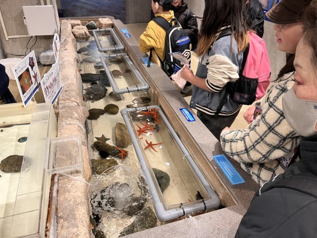 お弁当を食べてからも水族館を楽しみました。タッチプールで、ヤドカリやヒトデなどの生き物に触ることができます。最初は、気持ち悪かったのですが、勇気を出して触っていました。水族館を出発し、片瀬江ノ島駅に着きました。電車に乗って、学校に戻ります。