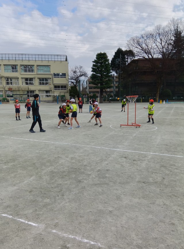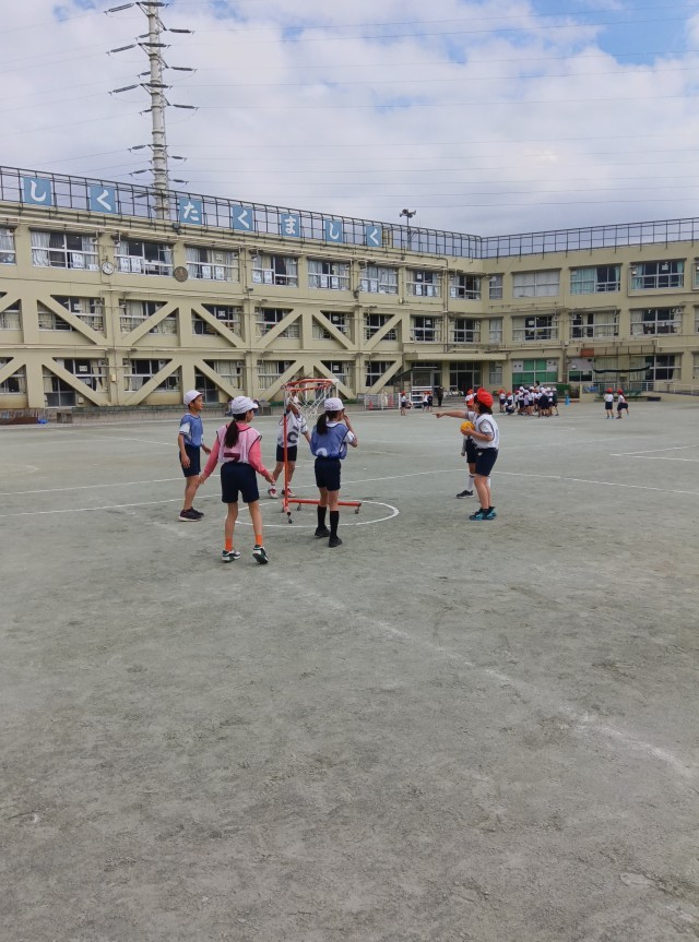 3年生は、体育の学習でセストボールをしています。子どもたちは、これまでの学習でゲームのルールを知り、得点するための動き方のポイント等もつかんできました。チームごとに作戦を選び、ゲームで生かせるように取り組んでいます。ボールがない時の動き方やポジショニングが高まり、白熱したゲームになってきました。