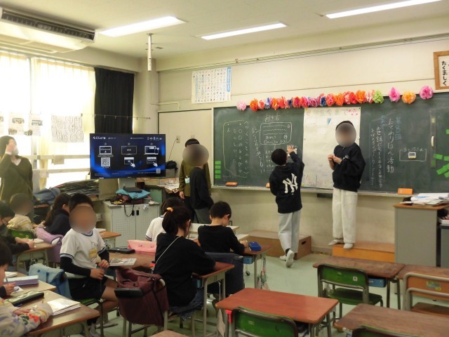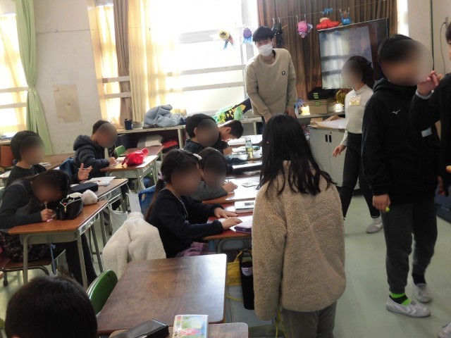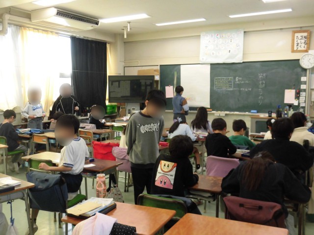 今日はたてわり班活動が行われました。1年生から5年生のみんなで、6年生へ感謝の気持ちを伝えるためにメッセージカードを作成しました。「ありがとう」の気持ちを文章にして、丁寧に一生懸命に書く様子が見られました。色鉛筆やペンでカラフルにしたり、好きな絵を描き、完成したメッセージカードは班ごとに模造紙に貼りました。5年生が中心となって、低学年の子に積極的に優しく声をかけてお手伝いしたり、取りまとめを行いました。すてきなメッセージカードが出来上がりそうです。