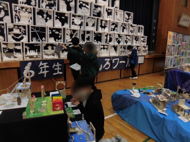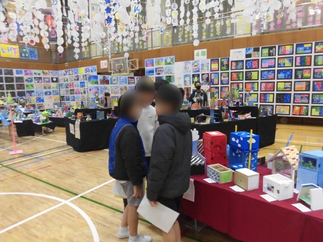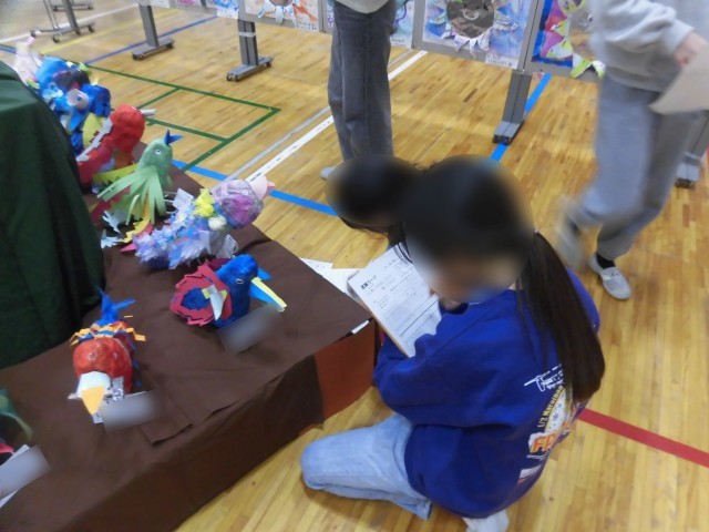 学習発表会<作品展>が始まりました。今日は児童鑑賞日です。作品の細かいところまでじっくりと見て、「いいねカード」や「鑑賞カード」を記入しました。どんな材料を使っているのか、どんなことを表しているのか、自分が感じたことなどを言葉にしてカードに記入しました。一つの作品の前に立ち止まり、じっーと鑑賞している様子も見られました。すてきな作品をたくさんみつけて、気持ちをわくわくいっぱいになりました。