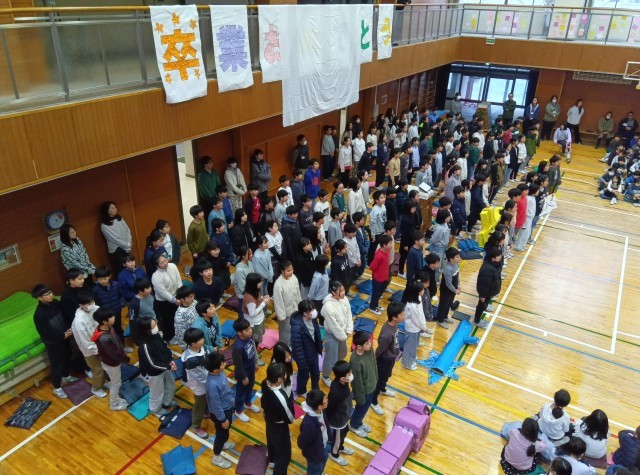 5年生は、よびかけと歌を披露しました。6年生への憧れと、自分たちも次はこうなりたいという決意が感じられました。