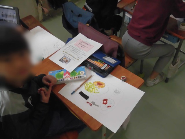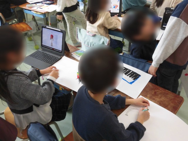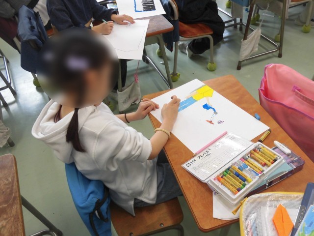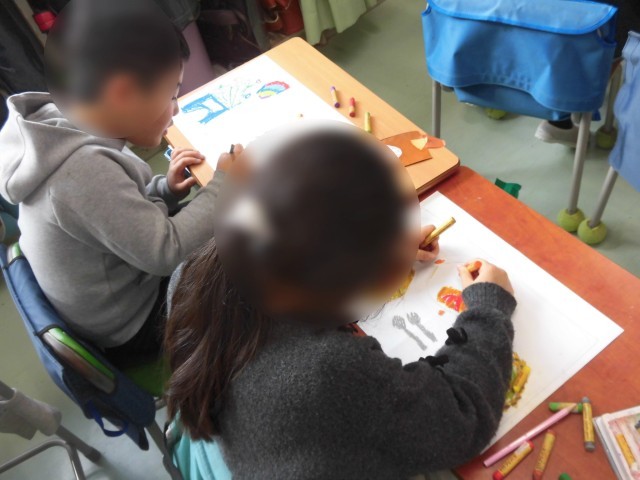 1年生の図工では、1年間の思い出の絵を描きました。ランドセル、鍵盤ハーモニカ、むかし遊びで楽しんだけん玉やこま、チューリップの水やり、おいしい給食などなど、一番の思い出を絵にしました。たくさんの思い出を画用紙に描くことができました。友だちどうしで思い出を楽しく話しながら取り組む様子も見られました。4月から入学する新1年生にも作品を見てもらって明正小学校を紹介します。