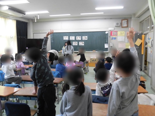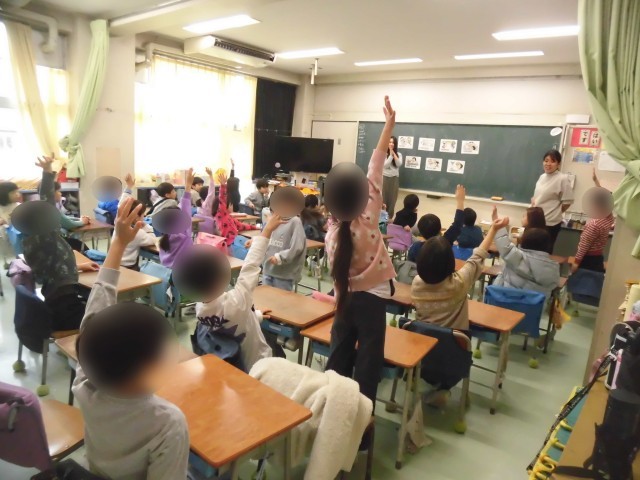 1年生の英語で「Do you like ~?」の学習をしました。今日は、さまざまなスポーツについて、ゲームをしながら「Do you like ~?」の質問をしました。積極的に英語で質問をして、一生懸命に取り組むことができ、先生も一緒になって楽しみながら学習できました。