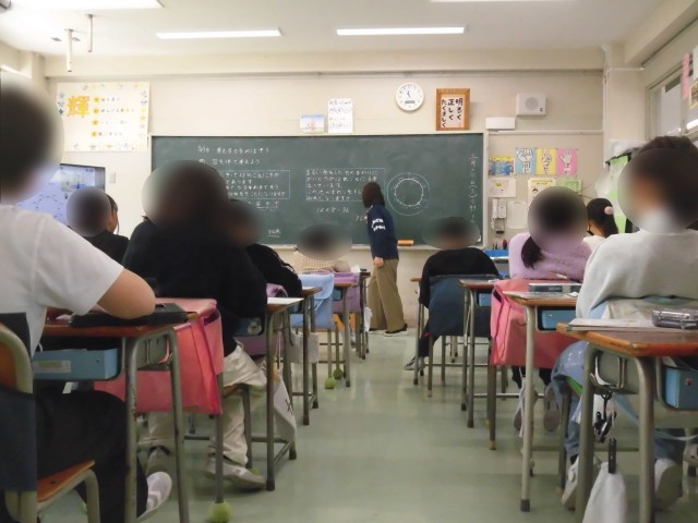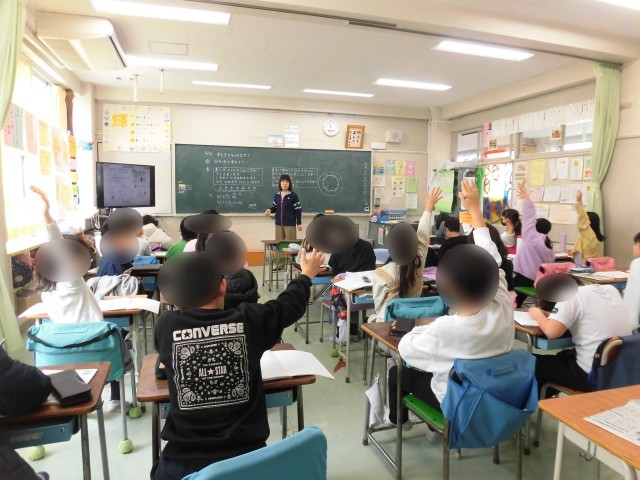 3年生の算数では「図を使って考えよう」の学習をしました。いわゆる「植木算」の計算方法について考えました。「木の数」と「木と木の間の数」の関係に注目して図を書いて規則性を考えました。先生の話をしっかりと聞いて真剣に取り組み、積極的に手を挙げて発表している姿には、立派な4年生の準備が整っていると感じました。