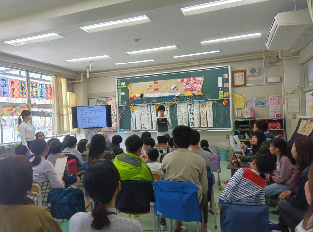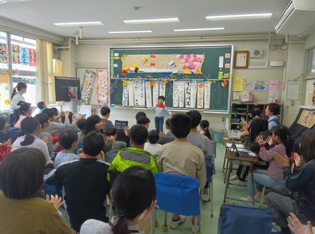 ひまわり学級で、卒業進級おめでとうパーティーをしていました。第一部の発表タイムでは、自分の好きなことや得意なことを一人一人発表しました。イラストや虫、遊びについての発表や、ダンス、九九など、本当に色々な発表がありました。得意なことがたくさんあってすてきな子どもたちです。拍手をもらってみんなきらきら笑顔でした。