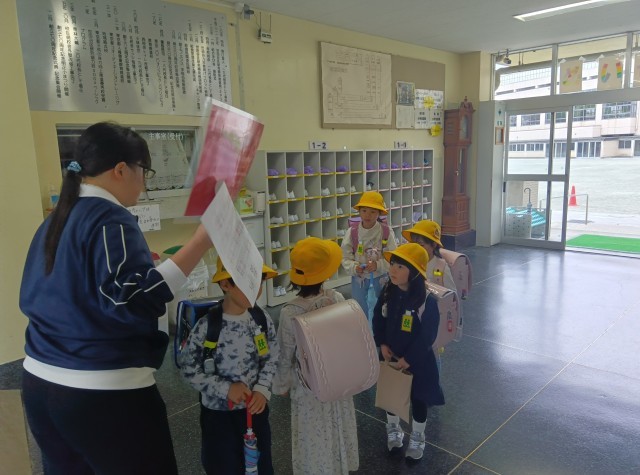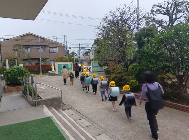 先生やお迎えのお家の方と一緒に並んで帰ります。