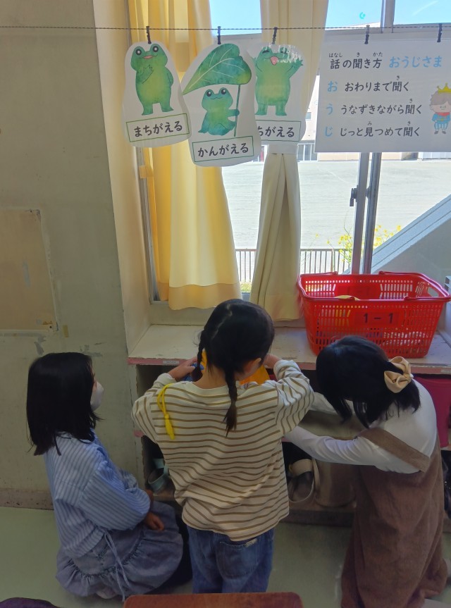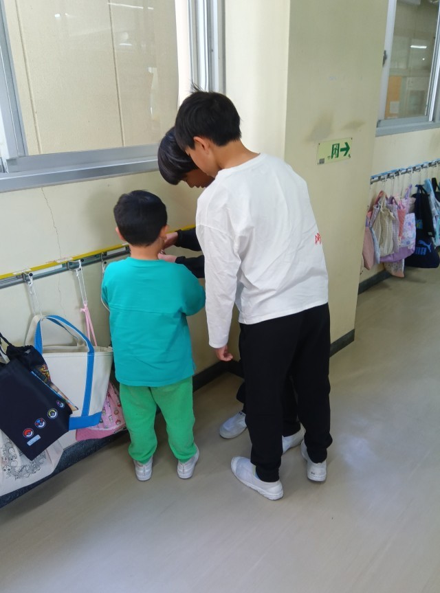 6年生は、朝の時間に1年生のお世話をしています。
