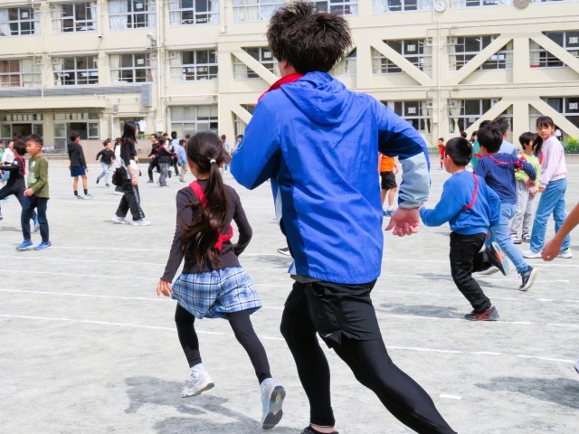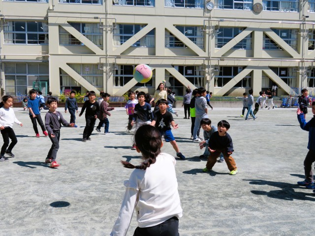 校庭に子どもたちの歓声が戻ってきました。やっぱり学校には子どもたちがいなくては・・・先生たちも一緒になって遊んでいます。