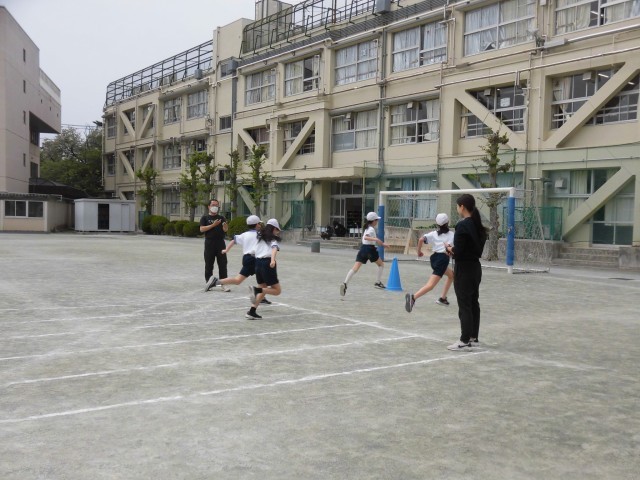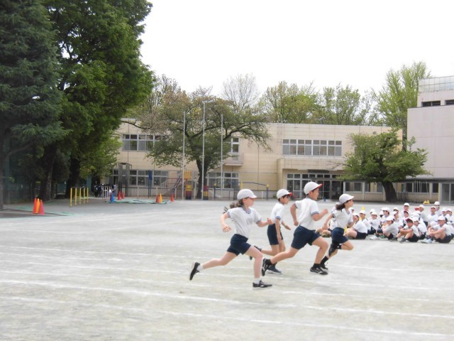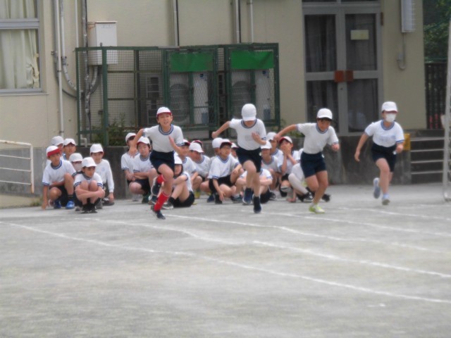 5年生の体育では50m走計測を行っています。計測前には準備運動もしっかりとして、体をほぐし温めました。少しでも速く走るために、スタートや走る姿勢にも気をつけました。スタート前には緊張する様子も見られましたが、最後まで気を抜かずに駆け抜けることができました。「がんばれー!」という友だちからのたくさんの応援で、ますます気合いが高まりました。