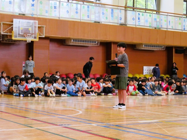 企画委員さんによる終わりの言葉、そして1年生の退場です。「早く明正小学校に慣れてください!」「わからないことがあったら何でも聞いてください!」といった優しい言葉がたくさんあり、1年生は安心した様子でした!