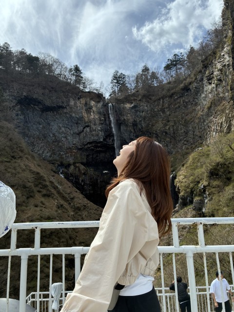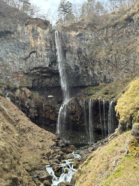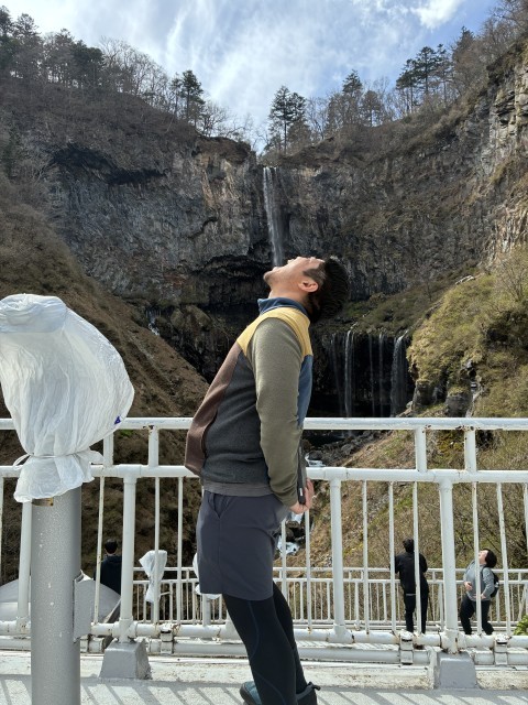 戦場ヶ原ハイキングです。男体山もよく見えました!最後に、日本三名瀑の一つ、華厳の滝です。エレベーターで下りて正面から滝壷付近を眺めて来ました。水しぶきを上げながら、轟音とともに流れ落ちる滝の姿は豪快そのものです。水分補給もバッチリ!