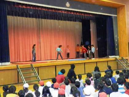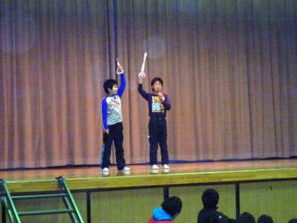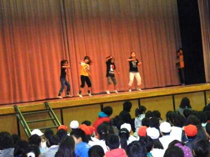 今日の児童集会は「スーパーキッズ」に立候補した子ども達の見事なパフォーマンスでした。マット運動やダンス、バイオリンの演奏、最後は6年生の電車アナウンス。子どもらしい一芸を披露してくれました。