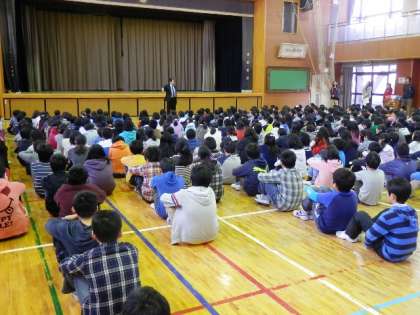 今日の高学年朝会では「暴力」のことについての話をしました。「大人も子どもも「暴力」で物事を解決しようとしたり、自分の気持ちを伝えようとするのは、いけないこと」ということの話をしました。また、「暴力やいじめで困っている人がいたら、必ず教えてほしい」ということについても話をしました。