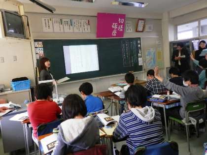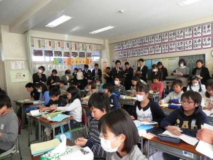 宮沢賢治の「雪わたり」を題材とした授業でした。主人公の気持ちを読み取り、朗読をすることがめあてでした。全員が真剣に取り組んでいる姿は、さすが6年生といったところです。