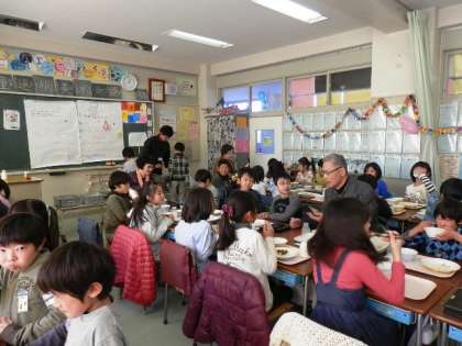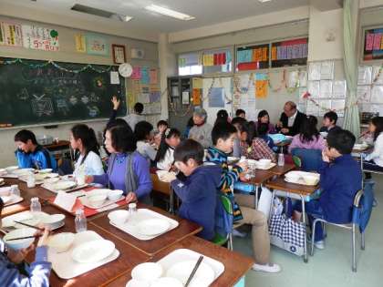 地域の若葉会の皆さんをお招きしました。毎年、3年生の教室にお迎えしています。