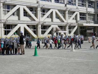 今年度最後の避難訓練を実施しました。今日の訓練の講話では、想定が地震であった事もをあり、2年前の東北地方大震災に関する話をしました。この2年間を見てて、子ども達の訓練に取り組む姿がいつも真剣で、話を聞く姿勢も800人を超える子どもたちが、じっと耳を傾けています。また、午後2時46分には、日本全国で慰霊の催しもあり、学校でも同じように黙とうで弔意を表しました。