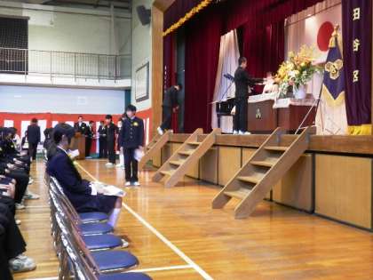 学び舎の砧中学校卒業式に参列してきました。厳粛な式であるとともに、卒業生の式にのぞむ真摯な姿勢に感動しました。特に合唱は心を揺さぶられるようでした。