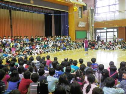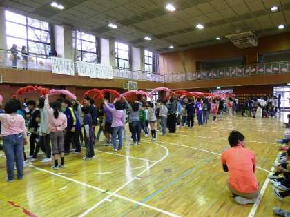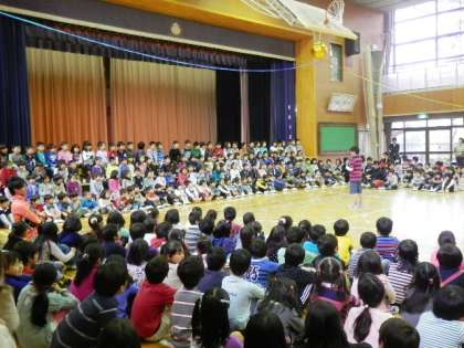 3校時に1年生を迎える会がありました。入学式から2週間たちましたが、毎日元気に通ってくる1年生を、2年生から6年生で迎えました。6年生に手をひかれて入場しました。いよいよ本格的に仲間入りしました。