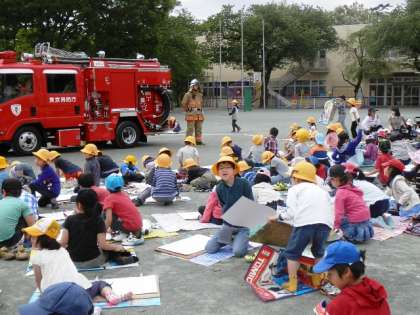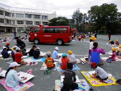 1年生、2年生、ひまわり学級は消防写生会でした。