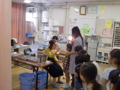 1年生は初めて見る検査の道具にドキドキしており、