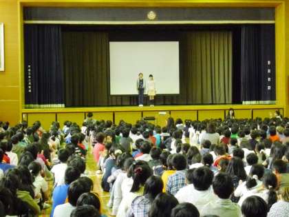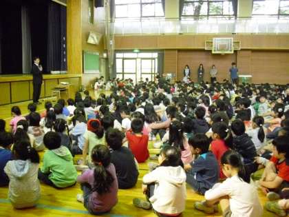 4月28日は明正小学校の開校記念日です。残念ながら今年は、日曜日なので、ちょっと早めの記念集会でした。今年は、60周年なので、秋にも60周年記念集会を予定しています。
