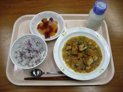 ゆかりごはん 生揚げのそぼろあんかけ あじさいゼリー 牛乳