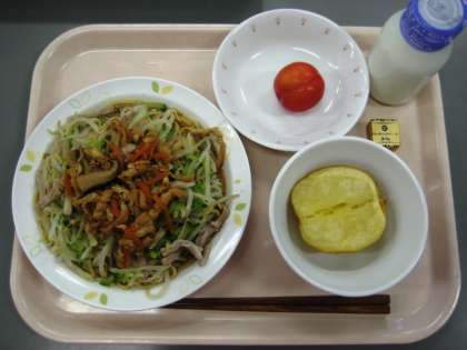 冷やし中華 じゃがいものバター焼き プラム 牛乳