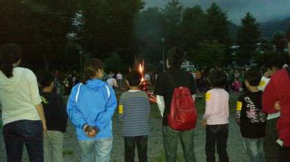 楽しいキャンプファイアの時間です。みんなで元気に歌ったり踊ったりしました。とても楽しかったですね!