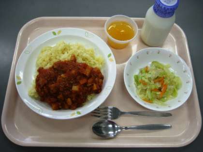 チリビーンズライス キャベツサラダ フルーツゼリー 牛乳