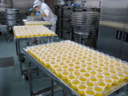 2枚目の写真はゼリーを作っているところです。一つ一つカップに入れて作ります。