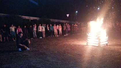 林間学園にはキャンプファイアがピッタリです。歌って踊って楽しい時間を過ごしました!