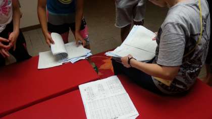 就寝前と起床後は、検温とともに健康観察をします。各部屋の保健係は、全員のしおりをもって報告します。