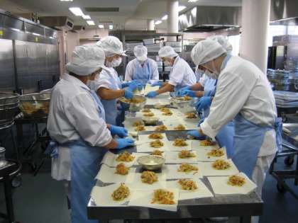 2枚目の写真は春巻きを巻いているところです。約800個の春巻きを一つ一つ手作りで作りました。