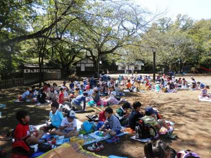 9月27日(金) 3年生と一緒に生田緑地に出かけました。朝からとても天気も良く風もさわやかでした。多摩丘陵の斜面に移築された日本各地の古民家の見学を兼ねていきました。お昼はすぐにそばにある枡形山にある公園で食べました。ここには、展望台があり、この日は、富士山やスカイツリー、明正小学校まで見えたばかりでなく、筑波山がうっすらと見えました。
