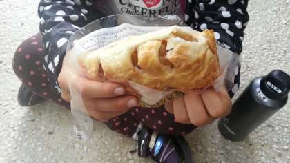 今日はおやつは、川場村名産アップルパイです。疲れた時は甘いおやつがなによりです!