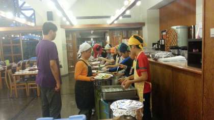 食事係は夕食の準備を始めました。指導員さんと一緒に時間に間に合うよう用意します。二回目になり、手際もよくなりました。