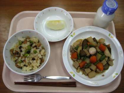 2枚目の写真はまめまめおこわの具を作っているところです。