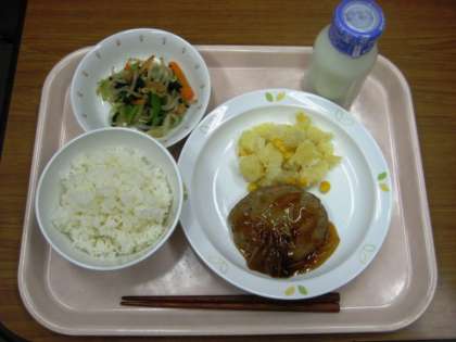 ごはん むろあじバーグ コーンポテト おひたし 牛乳