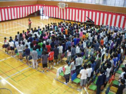明日の本番に向けて、5,6年生はリハーサルを行いました。