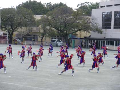 祝賀会の前に明正小HAPPYエイサーズによる演舞の披露がありました。