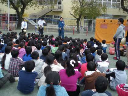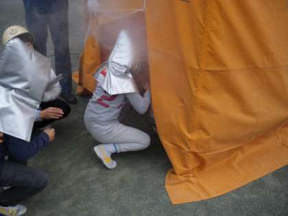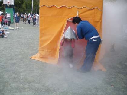 3年生は避難訓練後に煙ハウスの体験をしました。