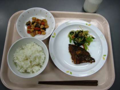 ごはん さばのみそ煮 おひたし 五目豆 牛乳