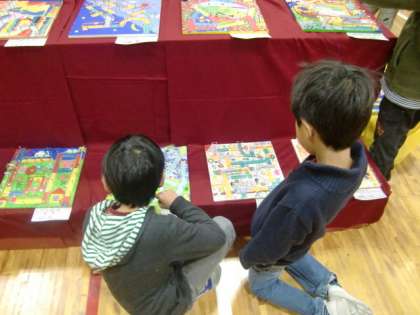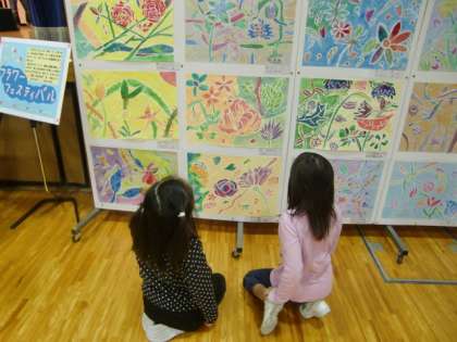 体育館入り口には、作品の制作過程もご紹介していますので、ゆっくりご鑑賞ください。