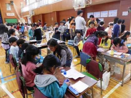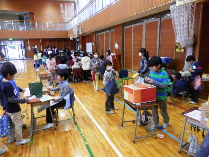 2年生が「あきのスマイルフェスティバル」を開きました。1年生やひまわりのお友だちに、いっぱい楽しんでもらいたいと自分たちでお店を考えました。体育館にたくさんのお店が並び、みんながとても楽しい時間を過ごすことができ、賑やかな2時間でした。